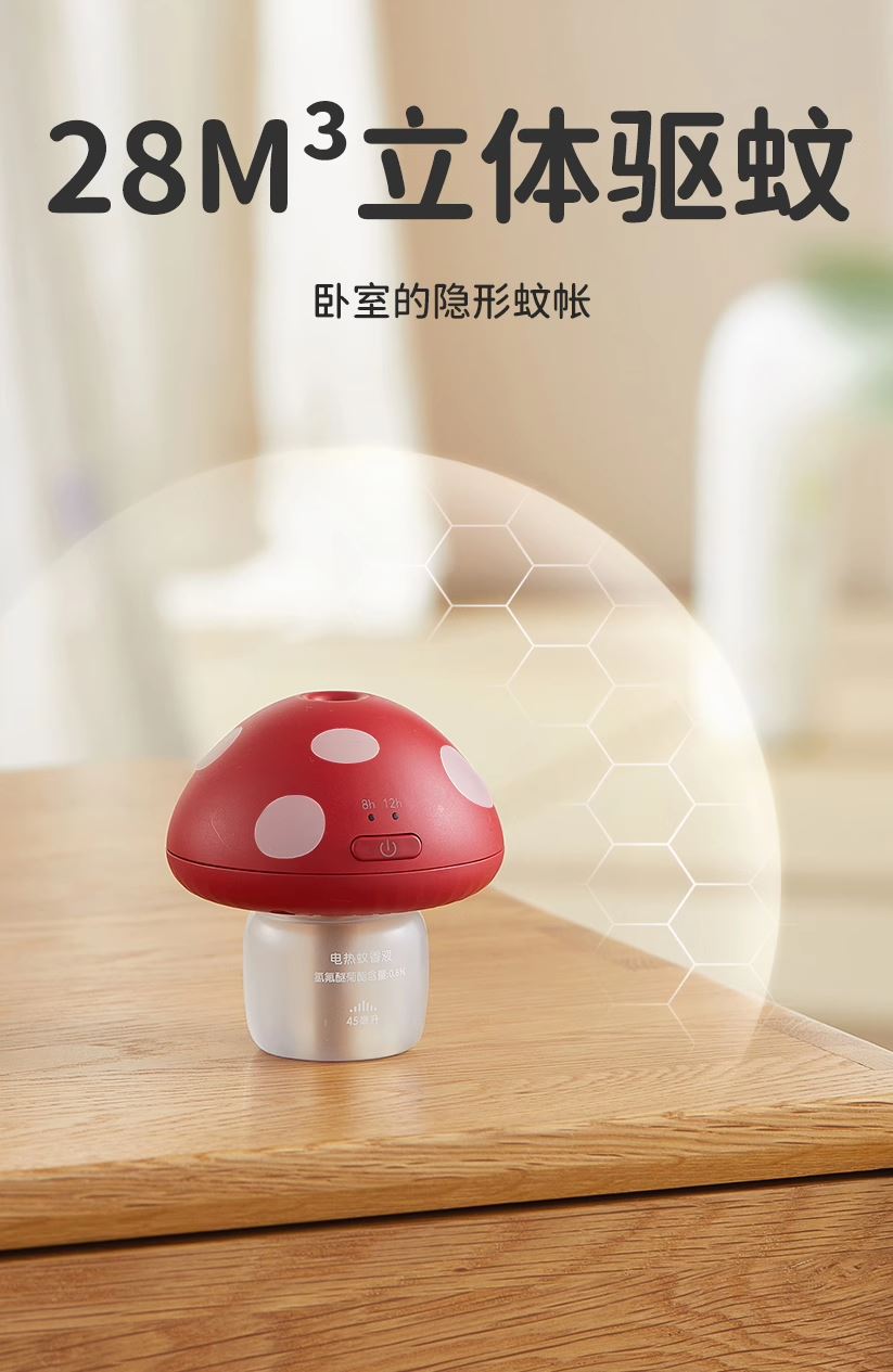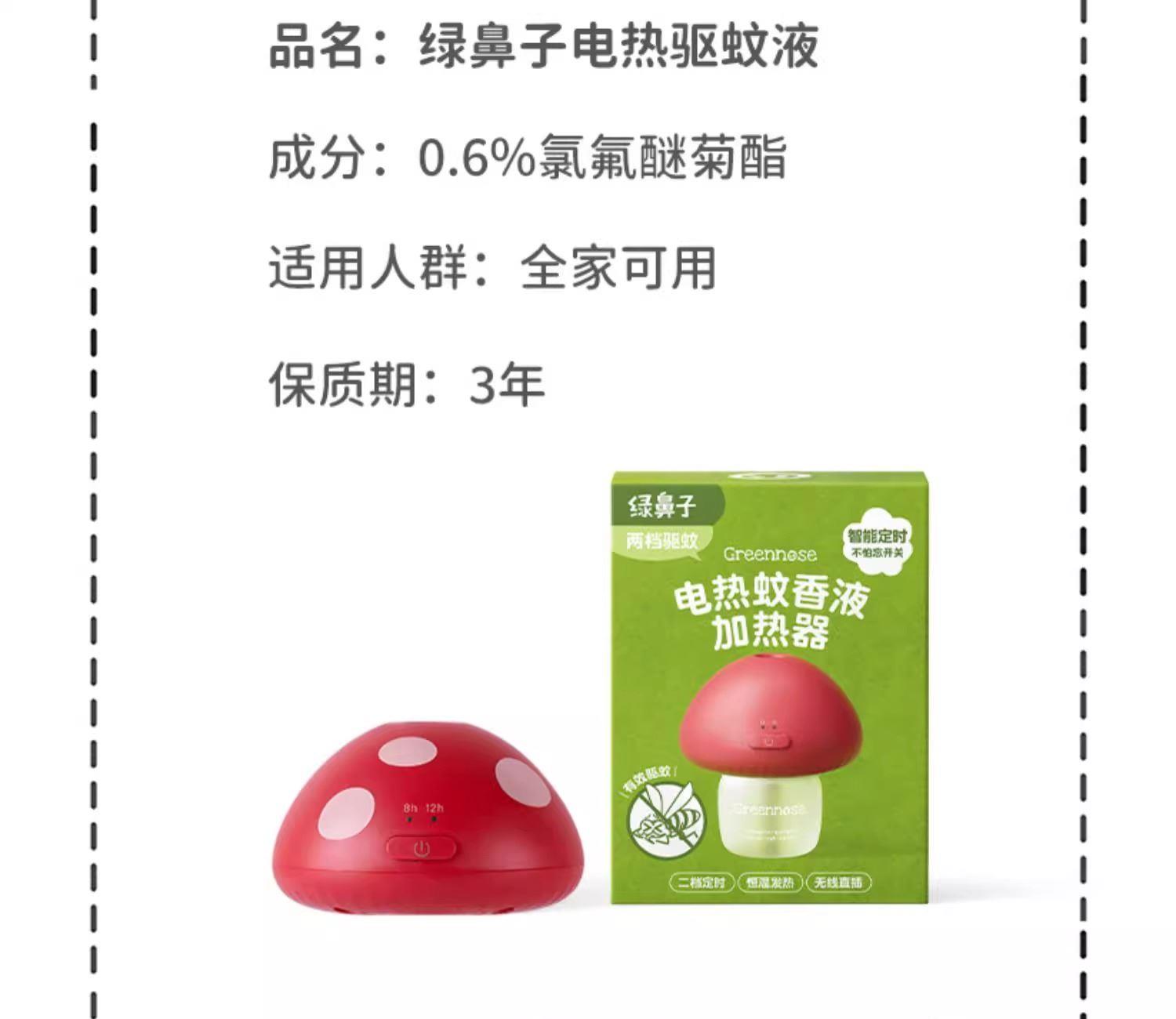 绿鼻子蘑菇驱蚊器蚊香液无味驱蚊液