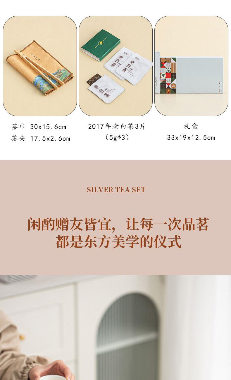 配 置:带胆茶壶一个,茶杯三个,干泡盘一个,2017年饼干形老白茶三片(共15克),茶巾一条,茶夹一个,贺卡一张,含手提袋礼盒包装。
