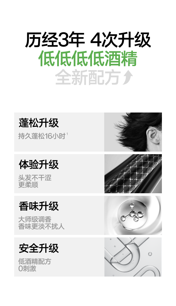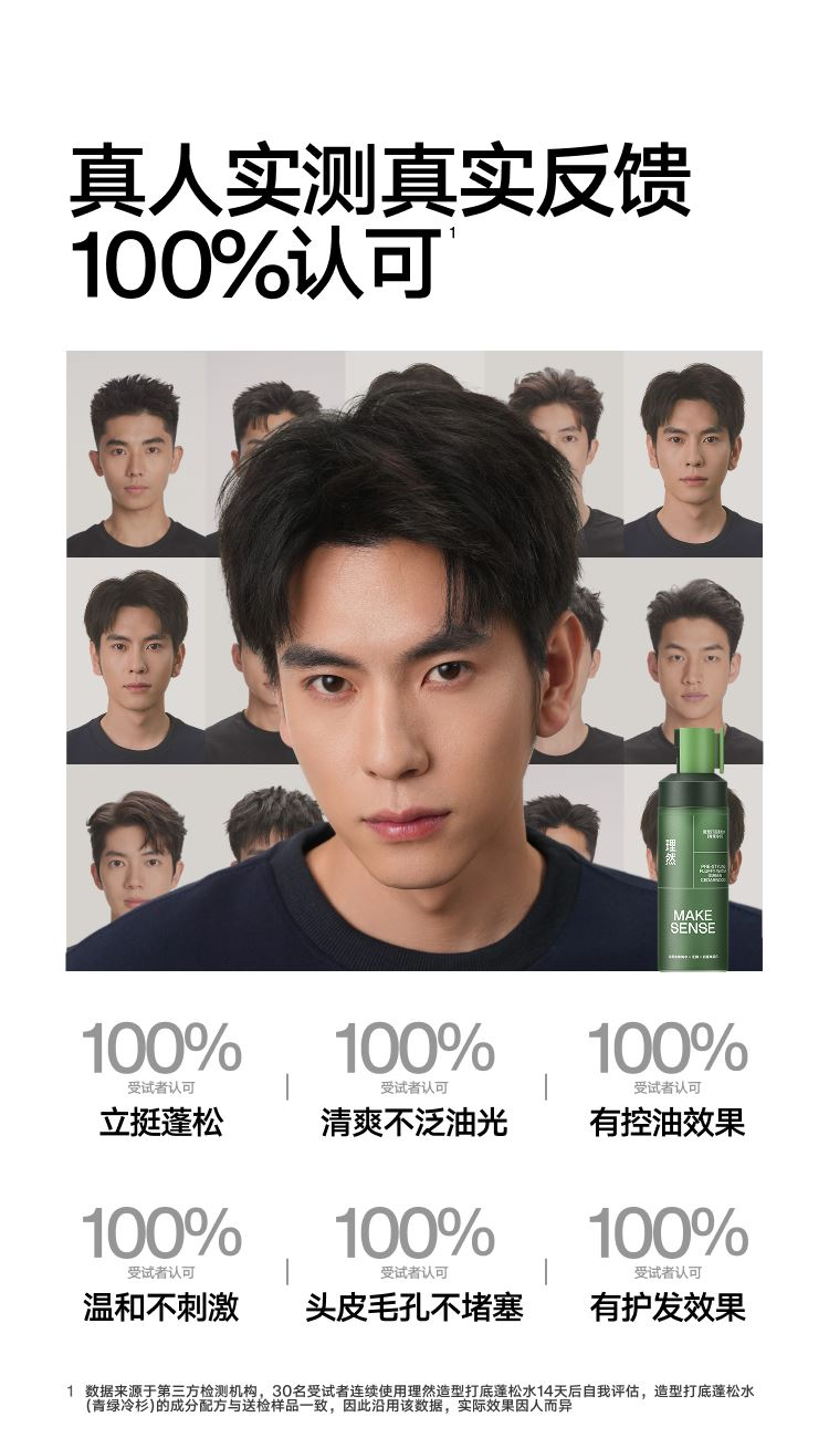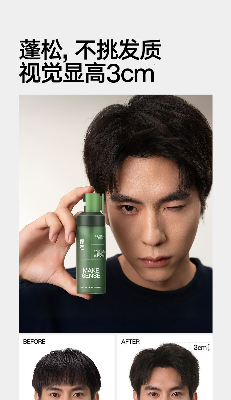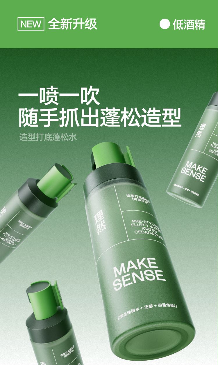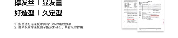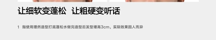 型号:打底造型蓬松水100ml 69码:6972761454634 规格:100ml/瓶 主要功效:零基础造型,随手一抓就蓬松 适用人群:懒人油头救星 产品卖点: 1、丰盈发量 秒变蓬松高颅顶 2、控油抗湿 改善油扁塌 3、养护发丝 无惧热损伤 4、清爽无胶不黏腻