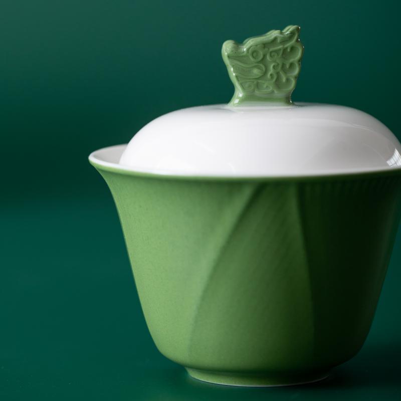 1.立体龙头盖粒设计,搭配粽叶纹茶杯与耐热玻璃茶海,方寸之间尽显端午茶礼的雅致美学。