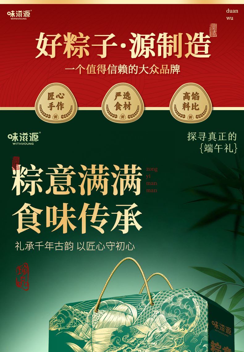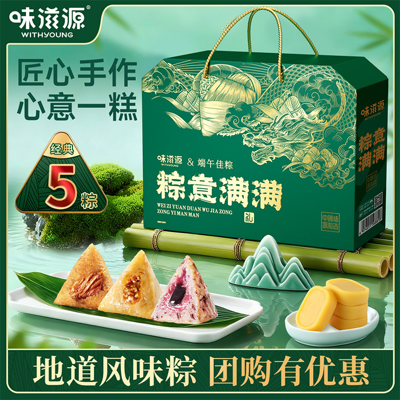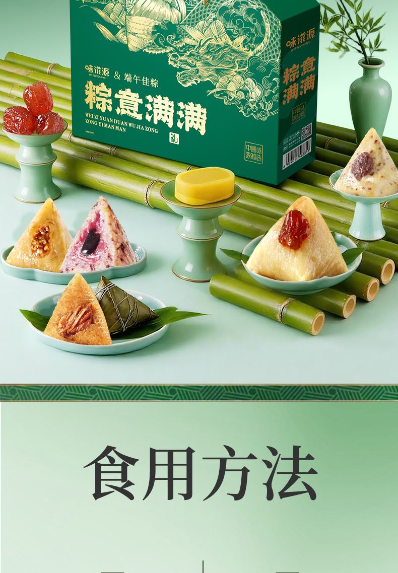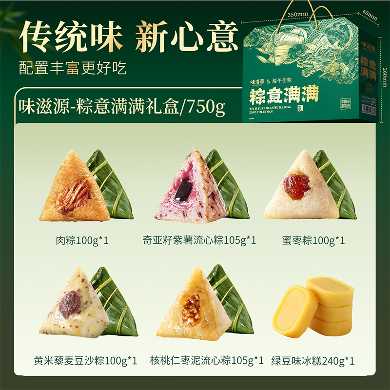 味滋源 鲜肉粽单枚100g 味滋源 黄米藜麦豆沙粽100g 味滋源 蜜枣粽单枚100g 味滋源 核桃仁枣泥流心粽105g 味滋源 奇亚籽紫薯流心粽105g 味滋源 绿豆冰糕240g