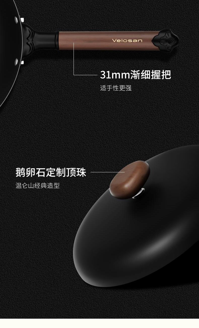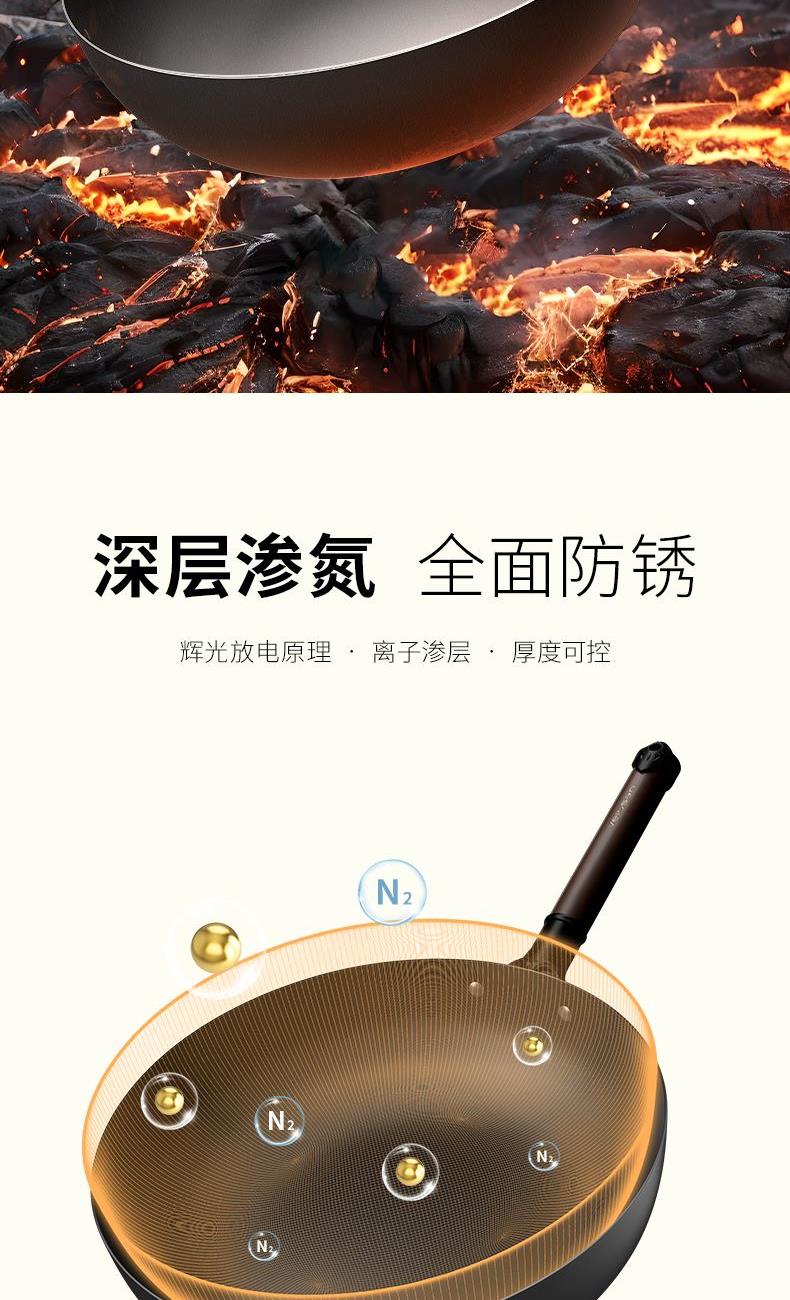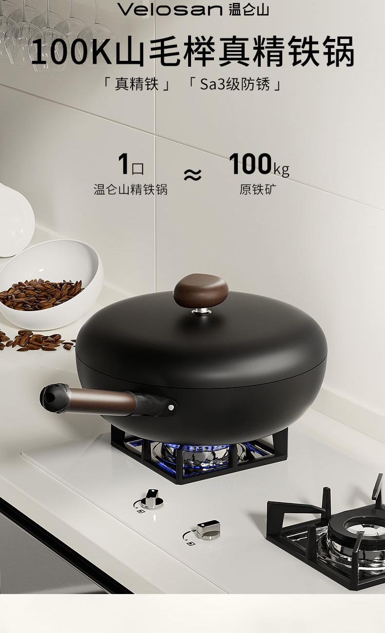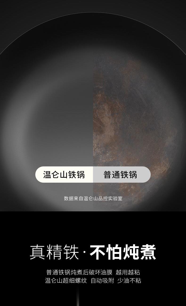 【材质】精铁 【规格】32cm 【净重】2.2kg 【毛重】3.2kg 【包装方式】彩盒+邮购箱 【外箱尺寸】395*125*395mm 【颜色】黑色 产品特点: 1.真精铁,Sa3级防锈; 2.深层渗氮,少油不粘; 3.厚底薄壁,颠锅更趁手; 4.平底设计,全灶适用。