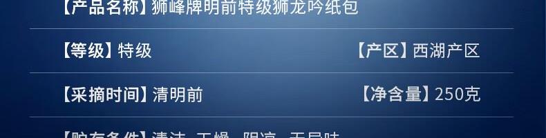 狮峰牌特级西湖龙井纸包狮龙吟5星250g
