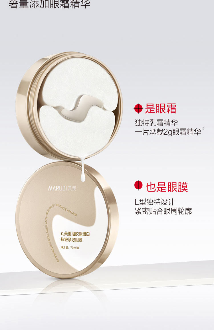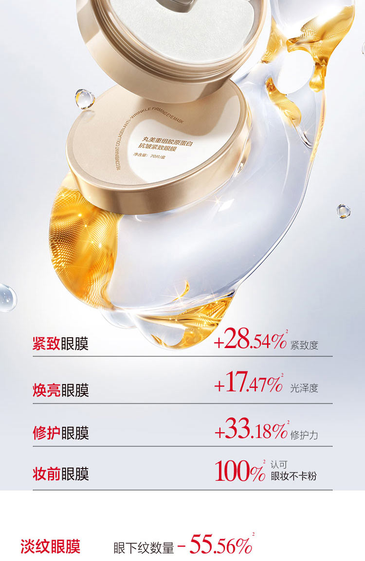 规格:丸美重组胶原蛋白抗皱紧致眼膜70片/盒*2 卖点:胶原贴贴 15min眼纹减半