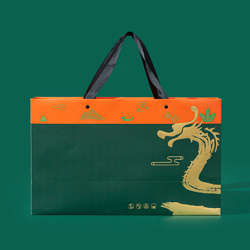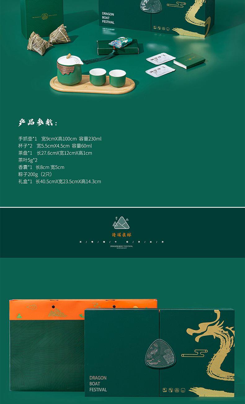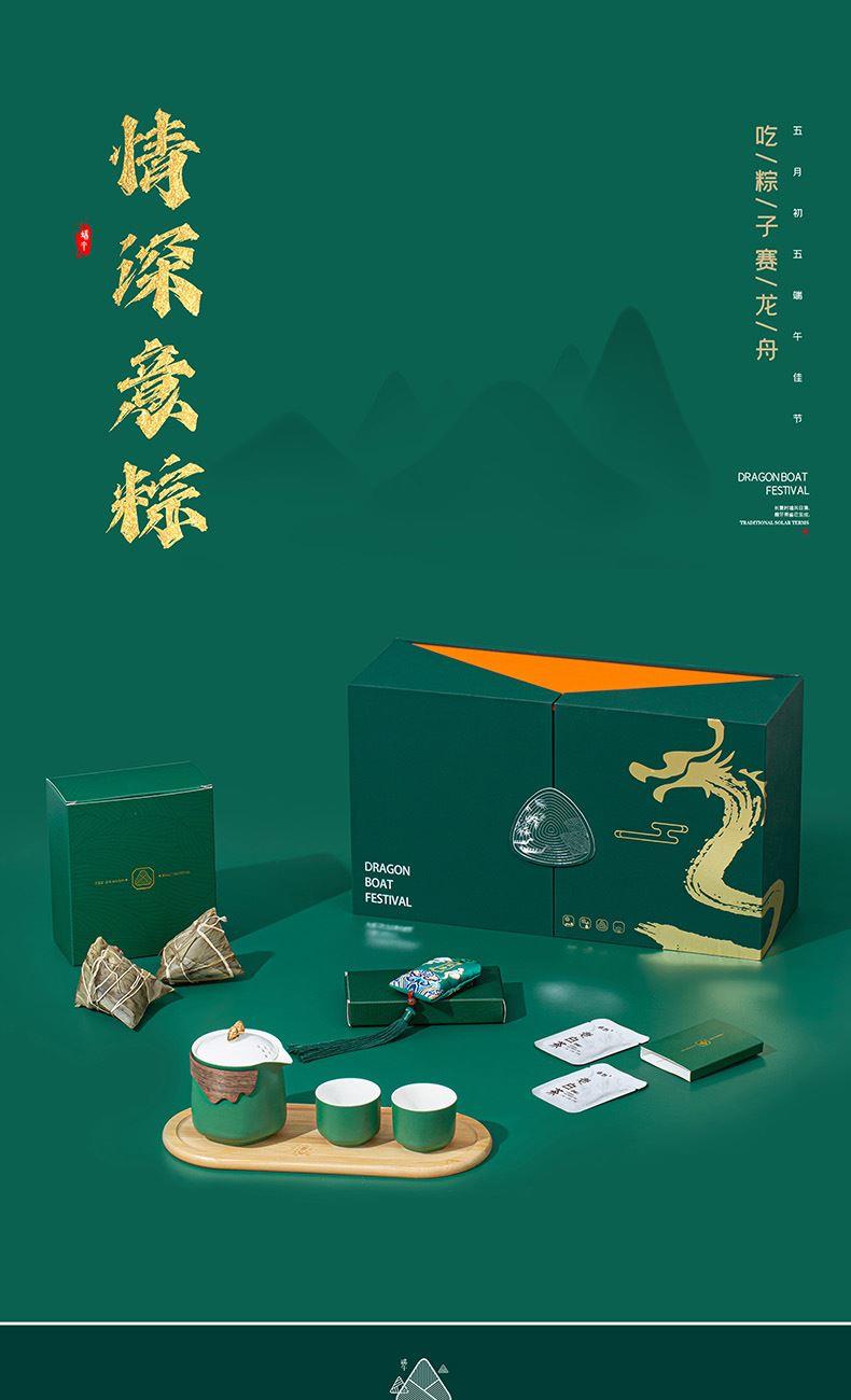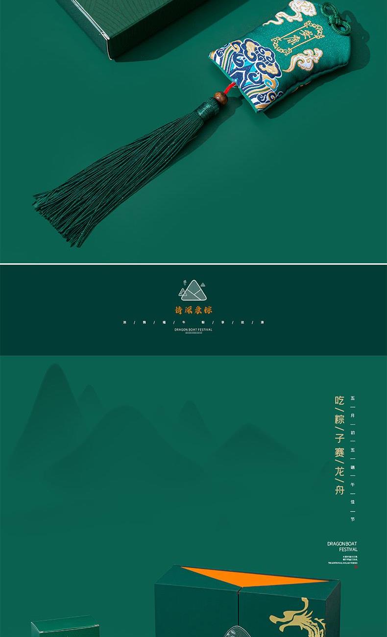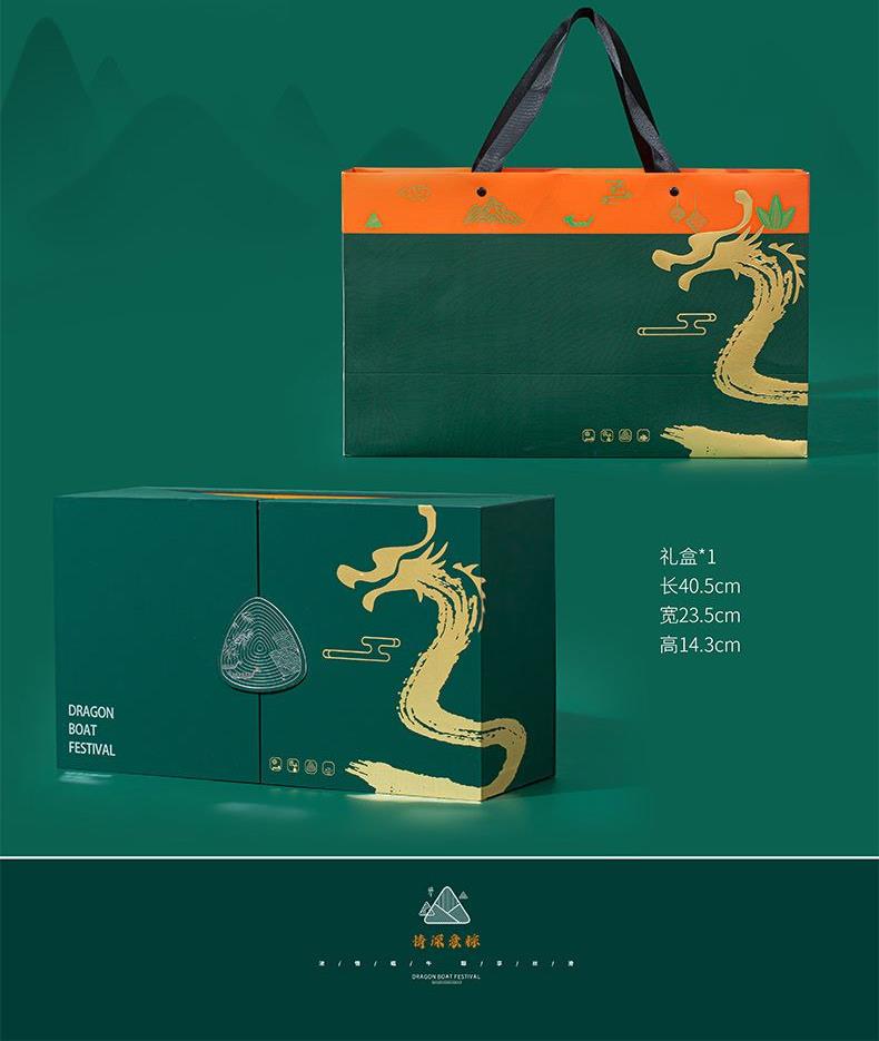 4.深绿礼盒搭配烫金龙纹与立体粽纹,双翻盖设计,大气尊贵,仪式感满满。