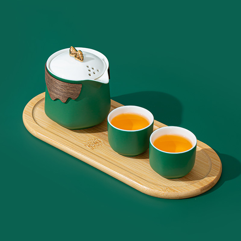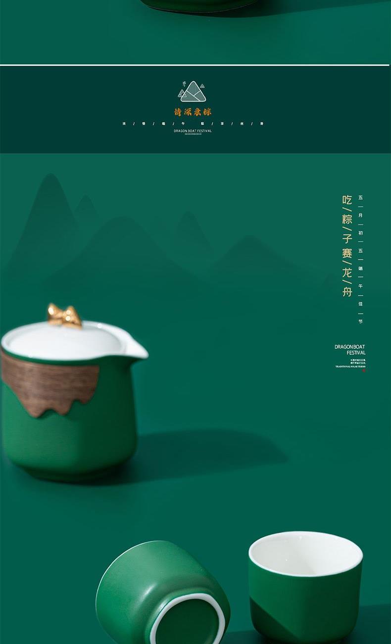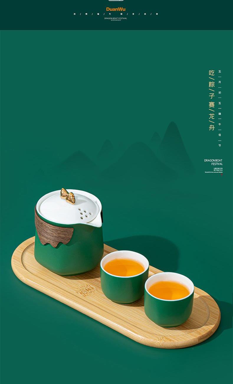 1. 粽型盖粒茶壶造型应景,壶身防烫竹壳,配茶杯与竹制干泡盘,天然质朴,品茶氛围感十足。