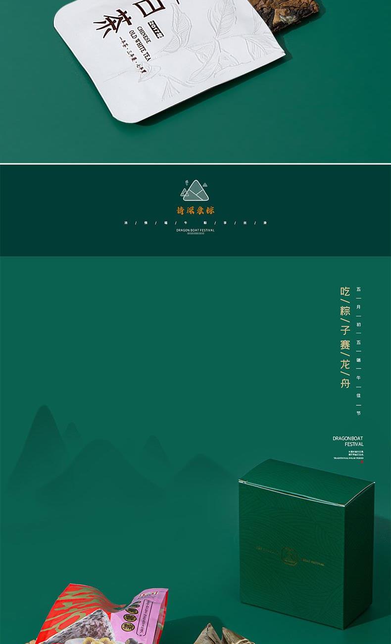 2.九年老白茶搭配五芳斋粽子,茶香醇厚、粽香软糯,茶解粽腻,粽衬茶醇,尽享端午舌尖美味。