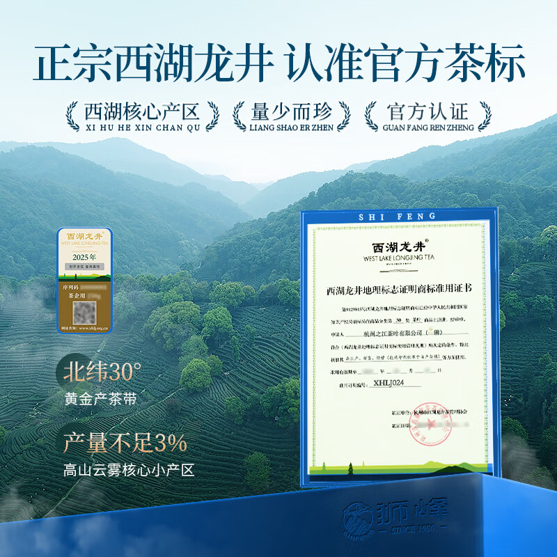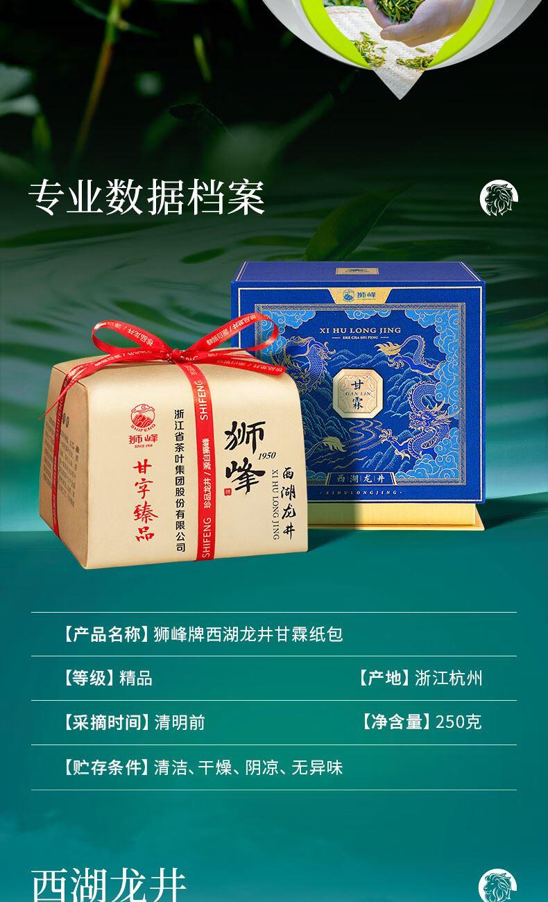 狮峰牌西湖龙井纸包礼盒甘润沁甘霖250g