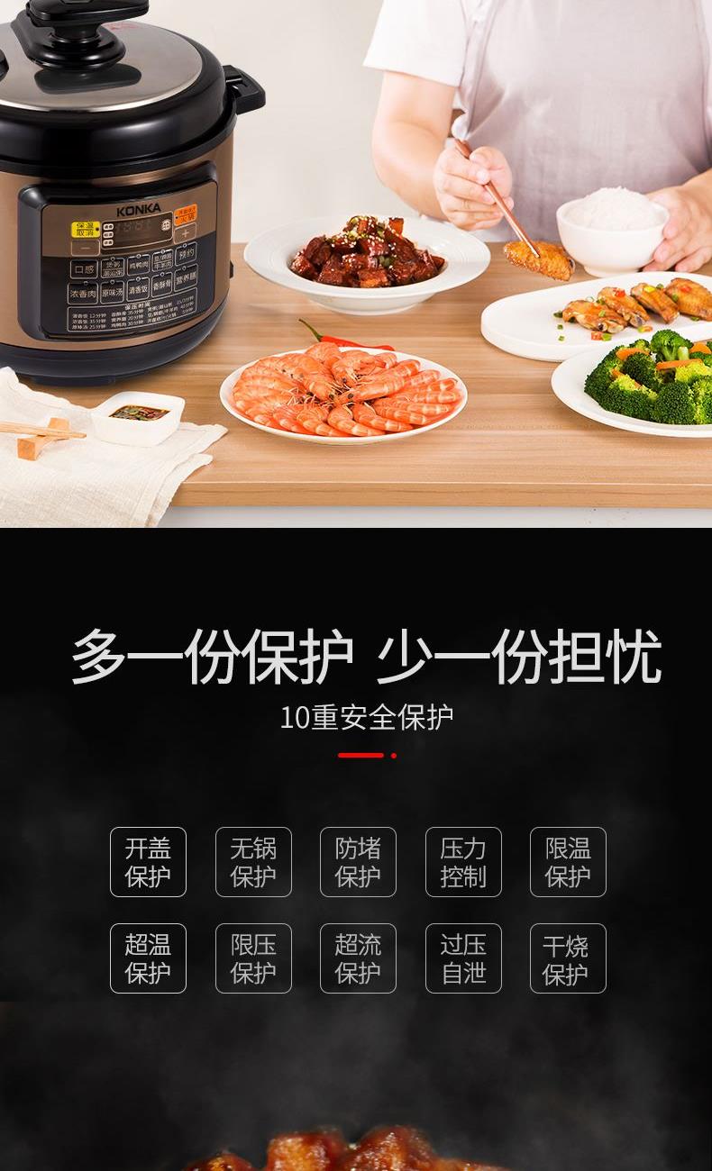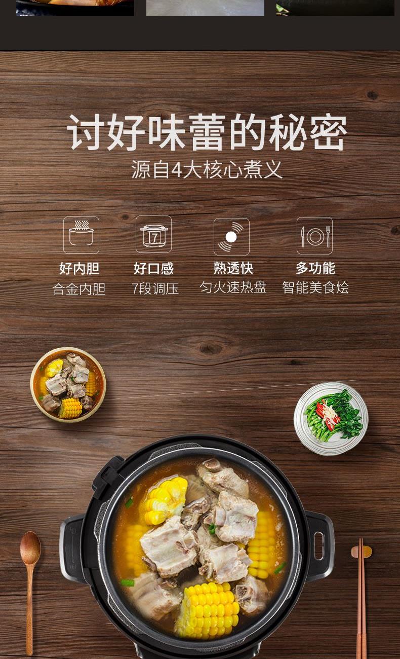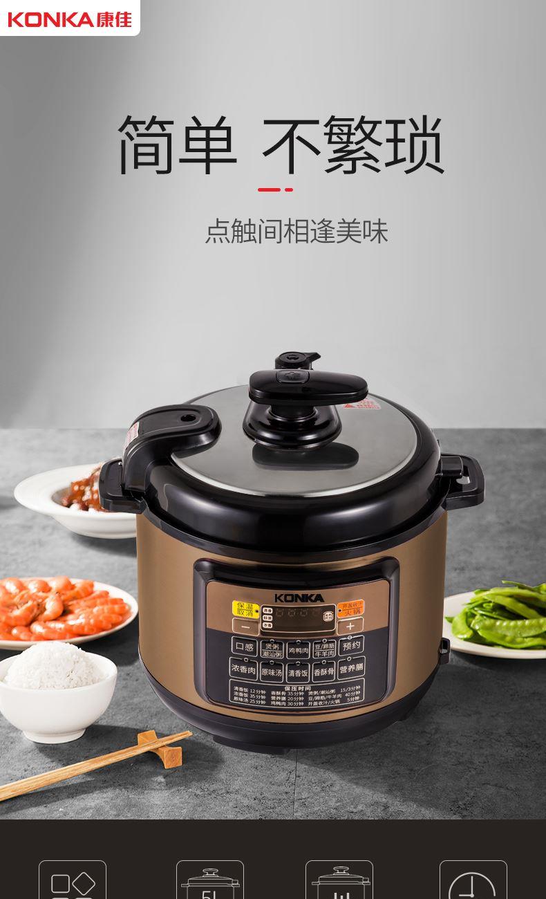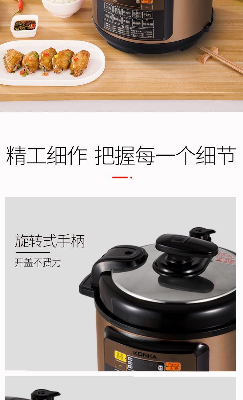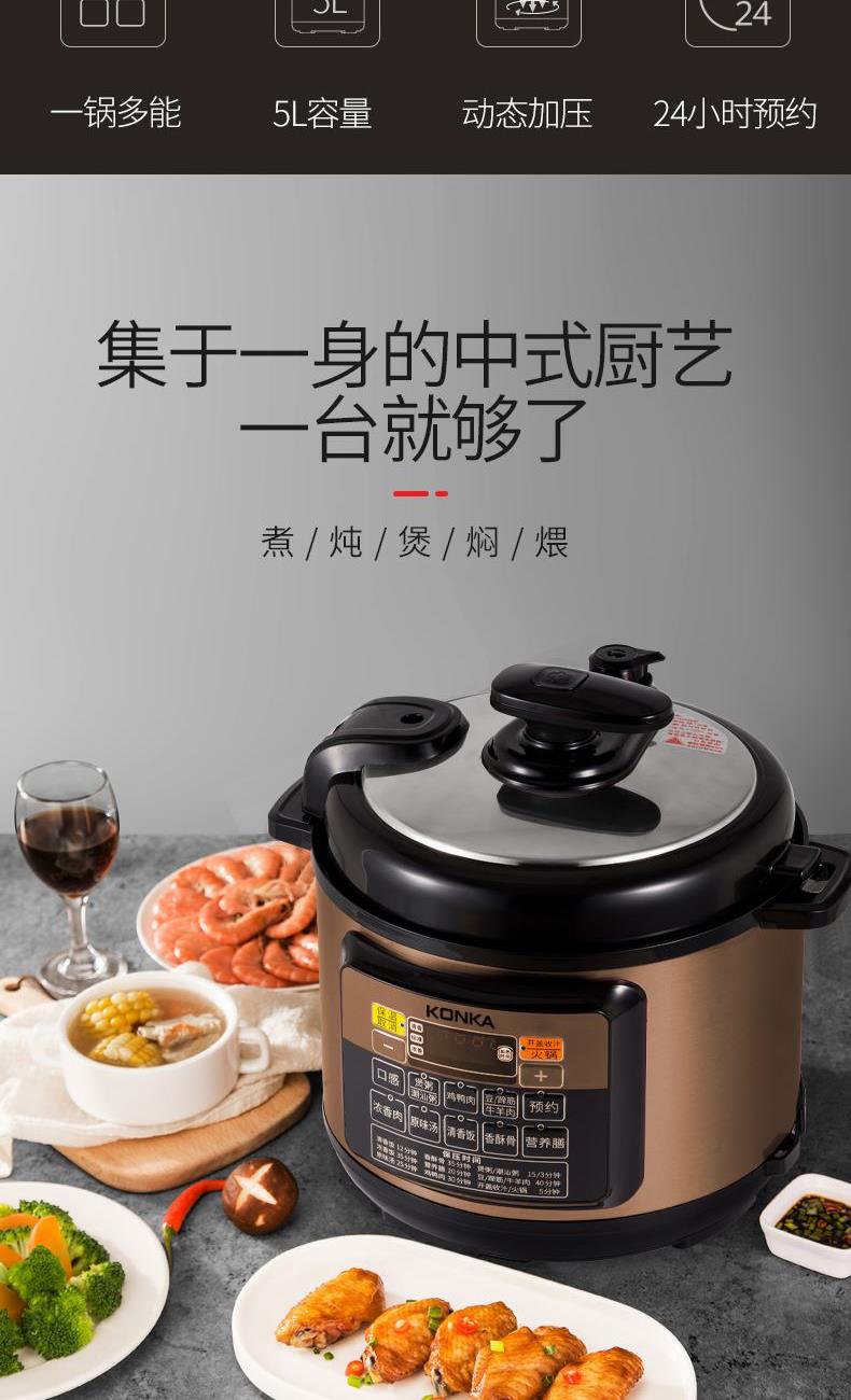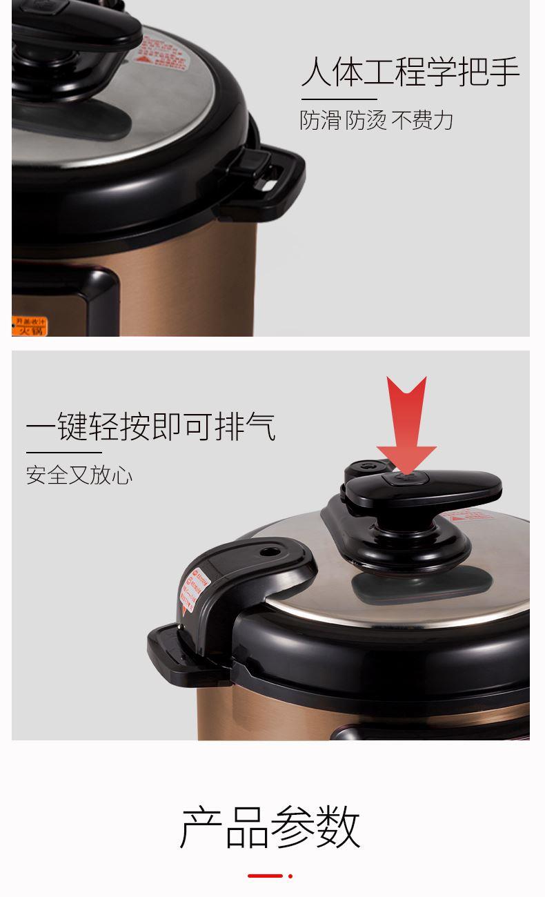 功率:1000W 款式:电脑款 额定电压:220V 额定频率:50Hz 容量: 5L 5L双喷厚边不粘内胆,导热均匀稳定,释放食物深层美味 11大营养菜单,饭、汤、粥、焖、炖、焗 9大安全防护,24小时预约,提前定时,未进家门,先闻饭香