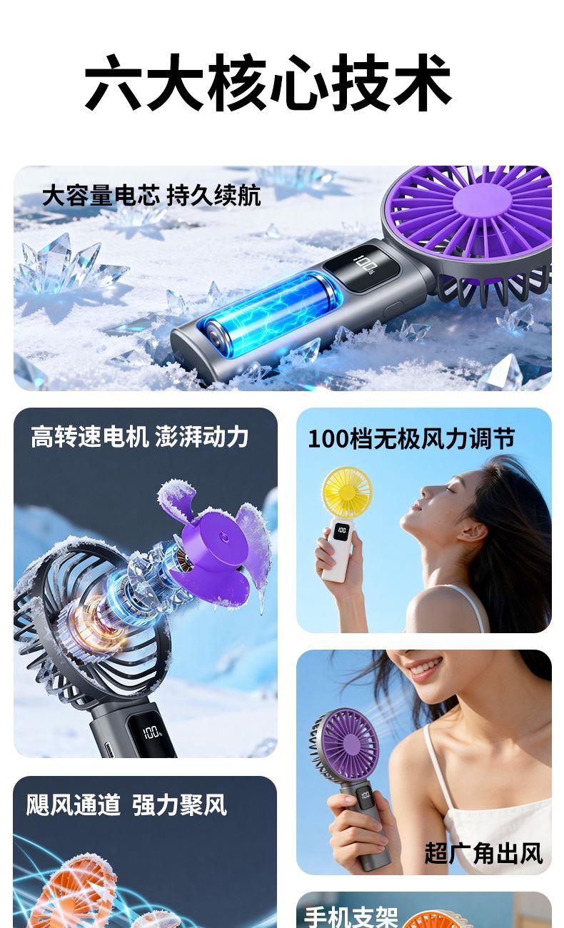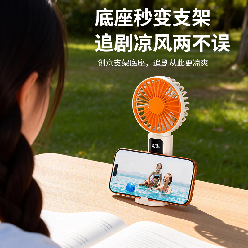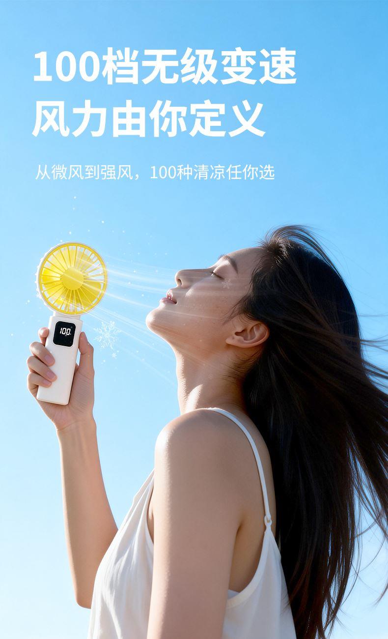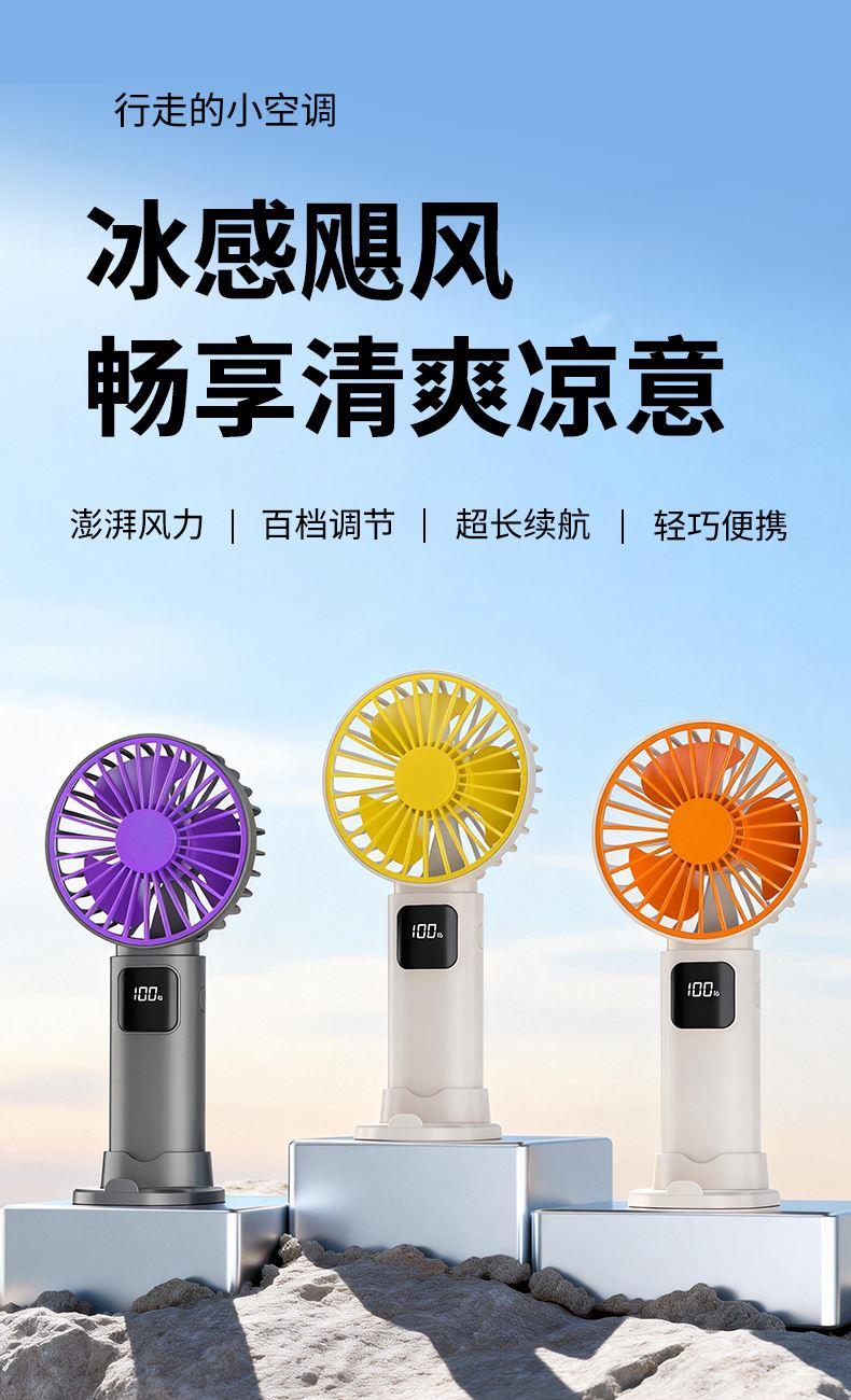 产品材质:ABS 产品功能:100档风力调节 产品容量:1200mAh 产品尺寸:188*93*36mm 产品颜色:黄色,灰色,橙色 100档风力调节,三色可选,搭配底座,追剧,清凉两不误。定制LOGO面积大。