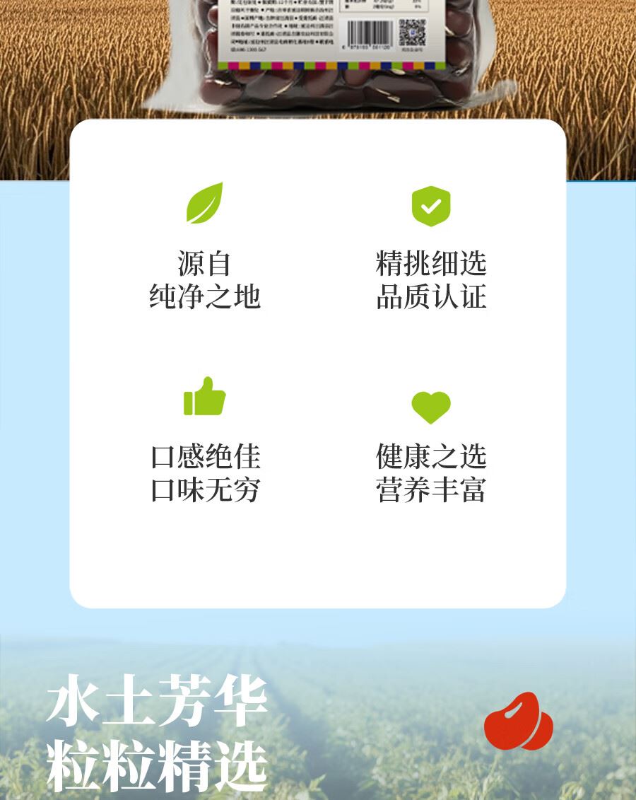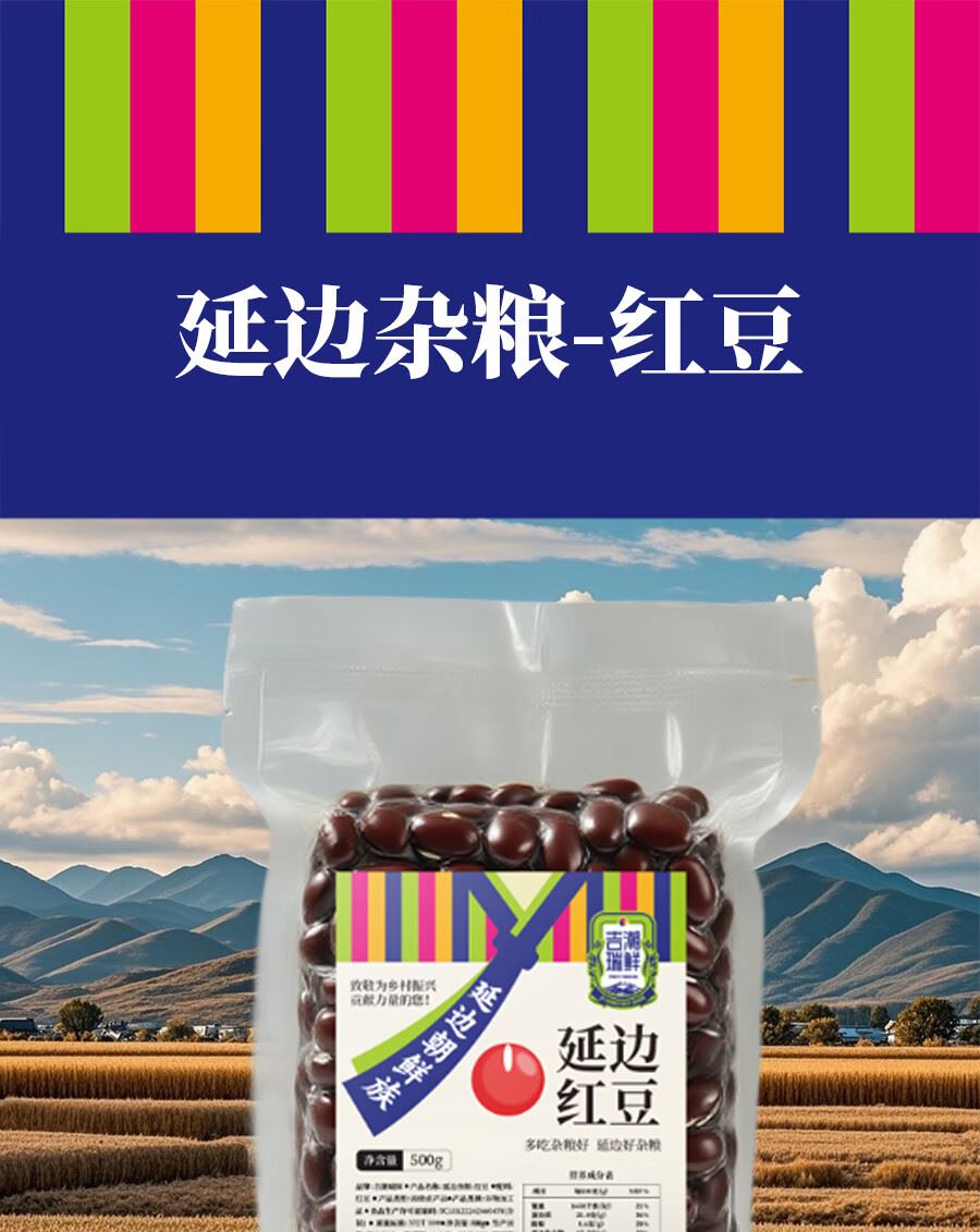 吉潮瑞鲜延边杂粮-红豆500克*1袋 配料:红豆 类别:谷物加工品净含量:500g 产地:吉林省汪清县 保质期:12个月 贮存方法:置于阴凉通风干燥处