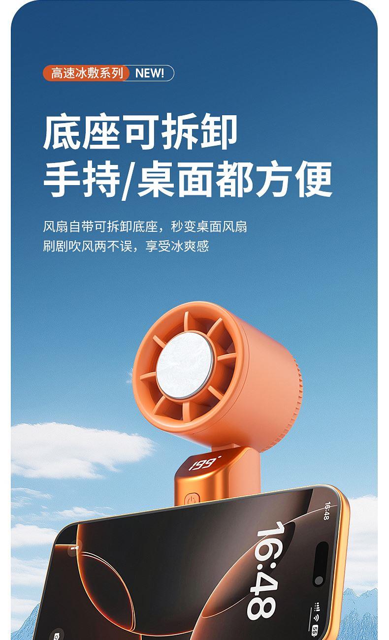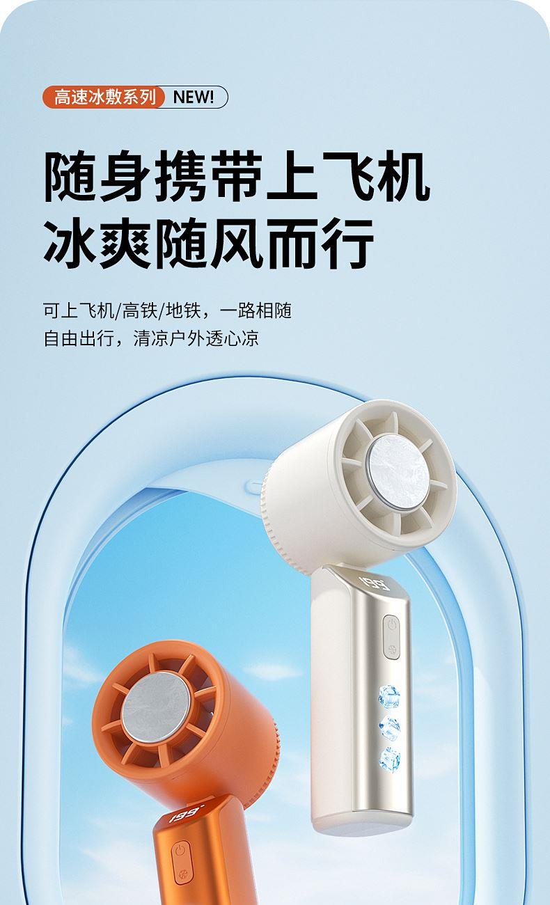 产品材质:ABS 产品功能:199档风力调节 产品容量:3000mAh 产品尺寸:90.5*173*170.5mm 产品颜色:米白色,蓝色,橙色 活力撞色设计,搭配电镀工艺,质感拉满;199档风力调节,超大风力,为你的夏天带来丝丝清凉。ICE智冷系统,3档冷风选择,智能冰感屏,带来不一样的体验。