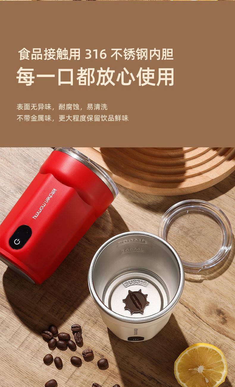 厨创妈咪磁力搅拌咖啡杯KT-JB-300WHT/RED