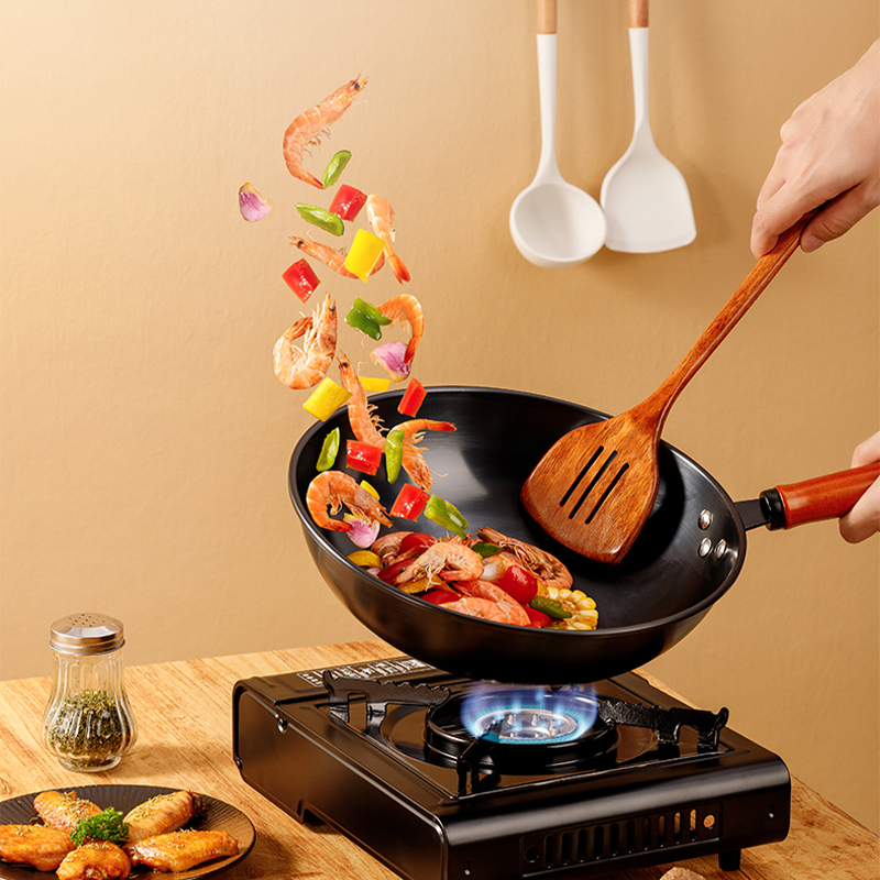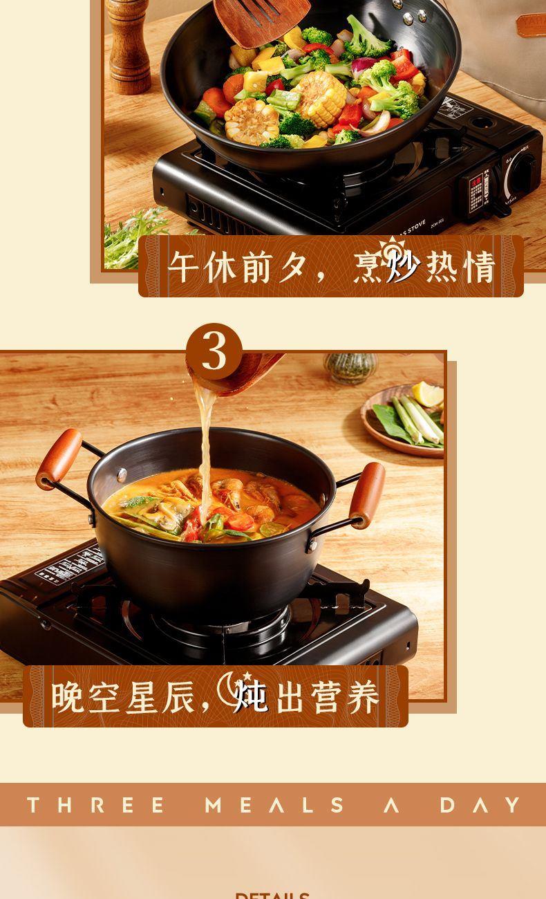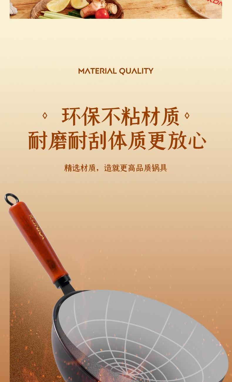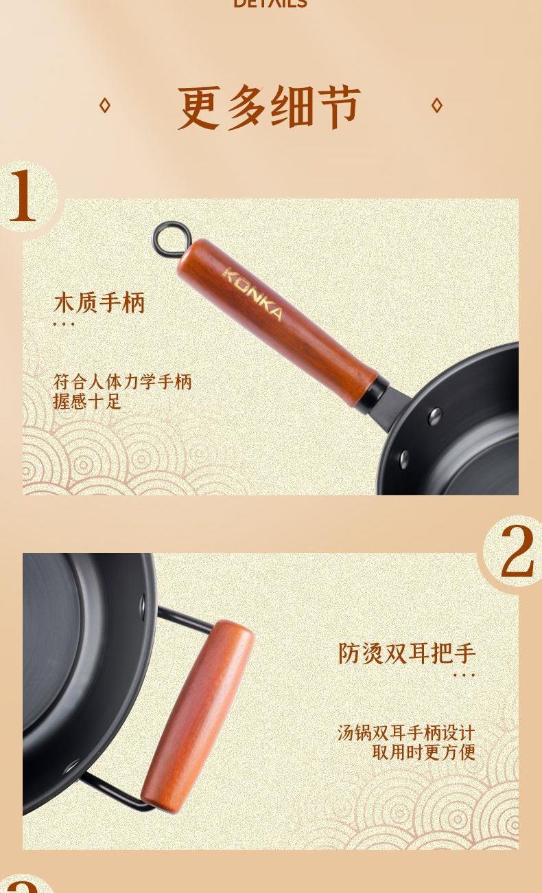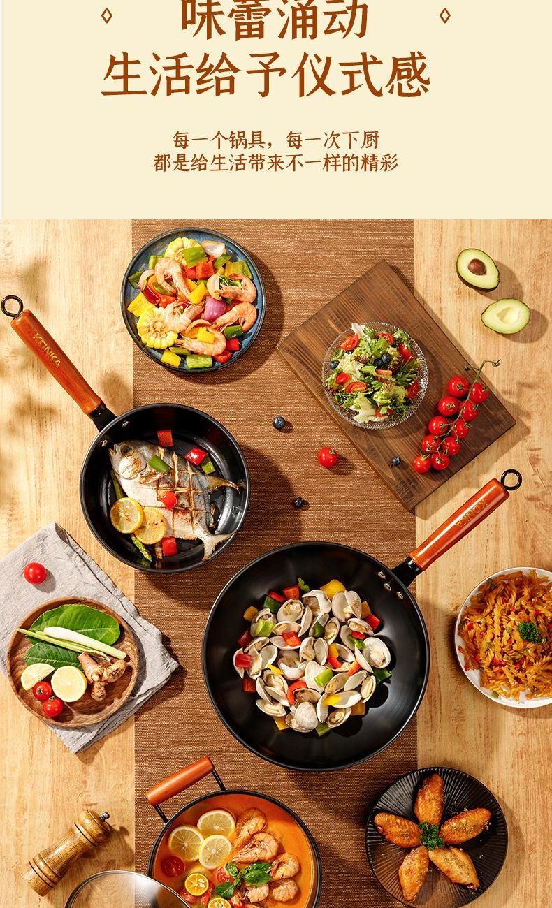 煎锅:22cn 炒锅:30cm 汤锅:22cm 1、内壁不粘环保涂层技术,超硬表层具有极强的防刮花、耐腐蚀、易清洗等特性 ; 2、煎、炒、汤、炖、炸等功能一应俱全; 3、优质铁基材,具有很高的热传导性,受热快;健康环保,轻便耐用; 4、外壁烤漆工艺,强度极高,光滑细腻,抗油污,易清洗; 5、 特制的优质胶木手柄,时尚环保,触握更舒适。