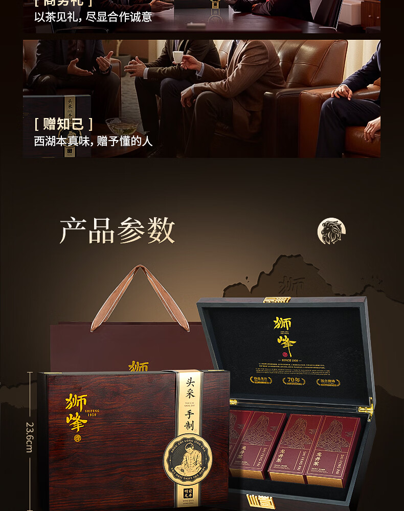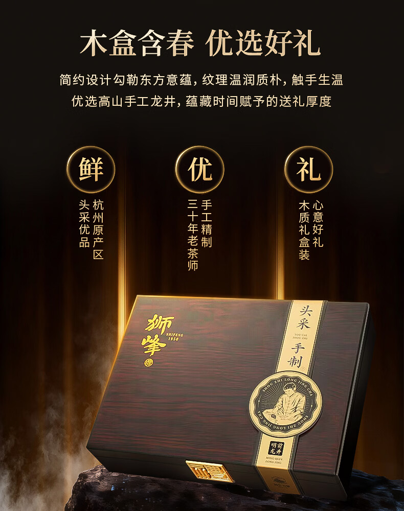 狮峰牌龙井茶礼盒茗狮醒春优手200g