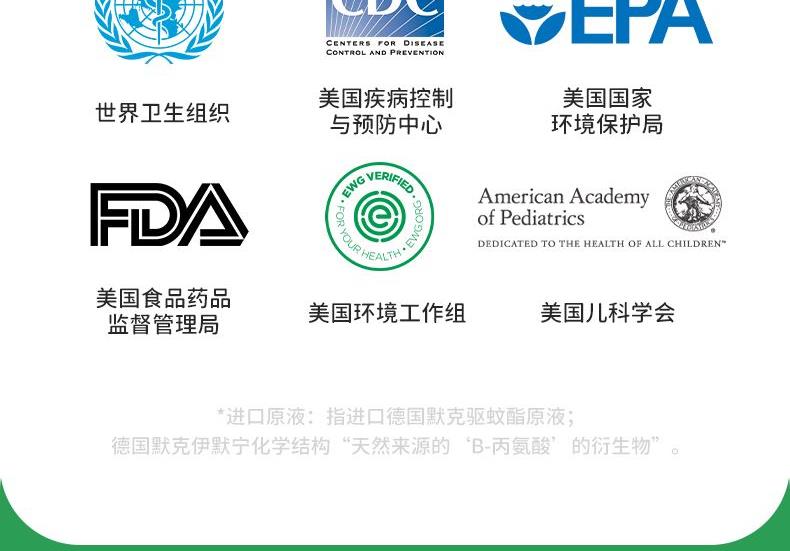 无酒精无香精款: 1.无香无酒精, 2.抗刺激成份 3.进口驱蚊酯;WHO-定义安全级别为U级成份 4抗刺激成份 3.进口驱蚊酯;WHO-定义安全级别为U级