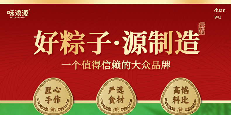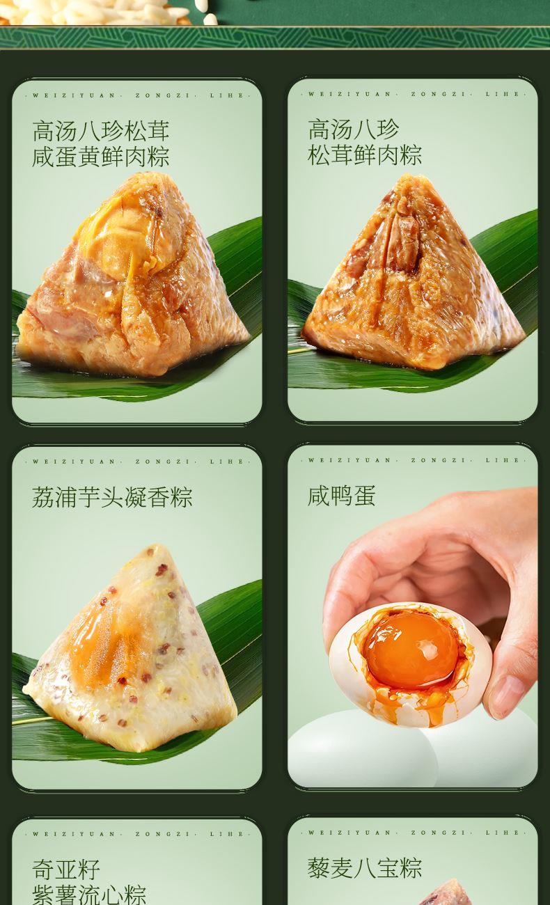 味滋源 高汤八珍松茸咸蛋黄鲜肉粽120g 味滋源 高汤八珍松茸鲜肉粽120g 味滋源 核桃仁枣泥流心粽105g*2 味滋源 奇亚籽紫薯流心粽105g*2 味滋源 藜麦八宝粽100g 味滋源 荔浦芋头凝香粽100g 味滋源 咸鸭蛋55g*4 味滋源 蛋黄肉粽100g彩膜 味滋源 鲜肉粽100g彩膜