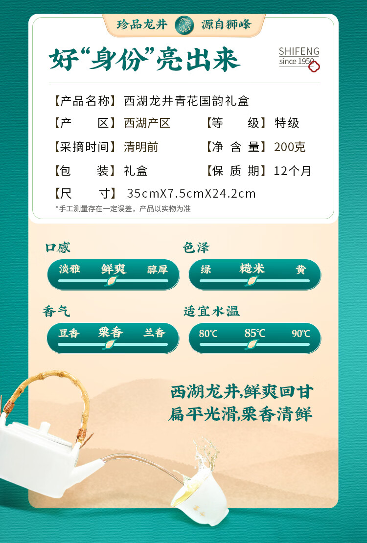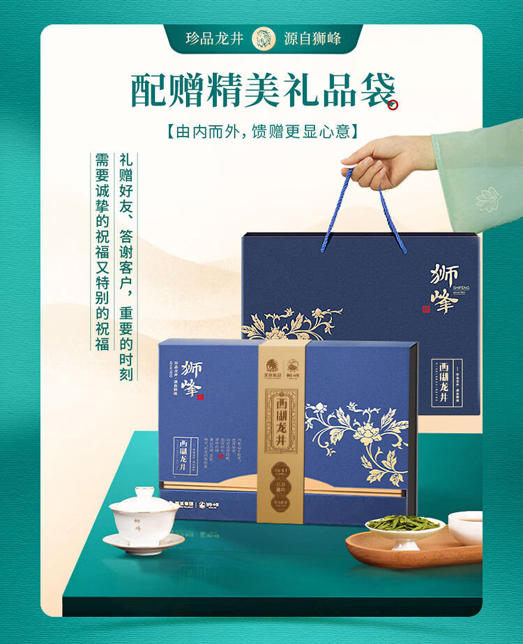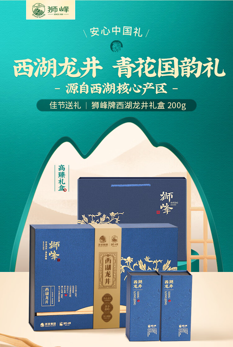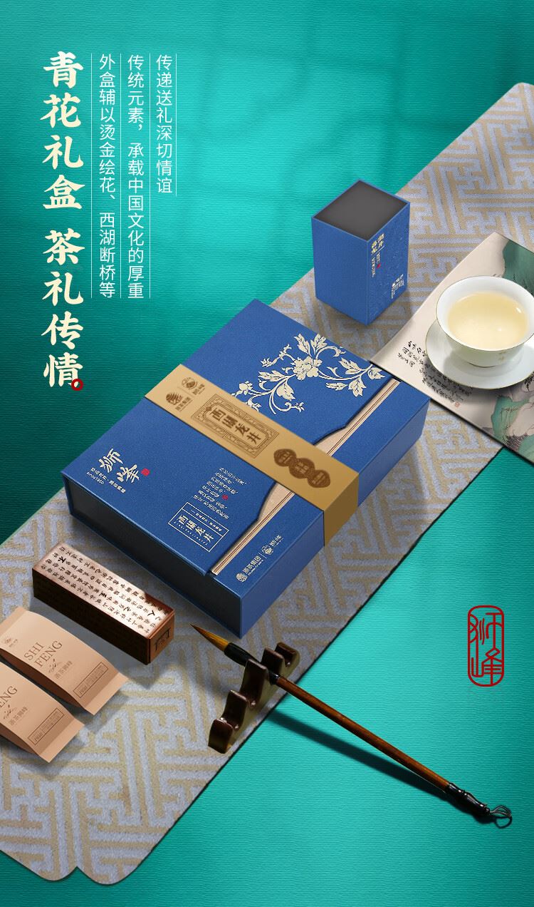狮峰牌特级西湖龙井定制款青花礼盒200g