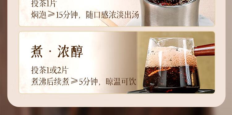 4、汤色红亮,口感甜稠糯滑、绵顺回甘,经久耐泡。冲泡、焖煮均有上佳口感。