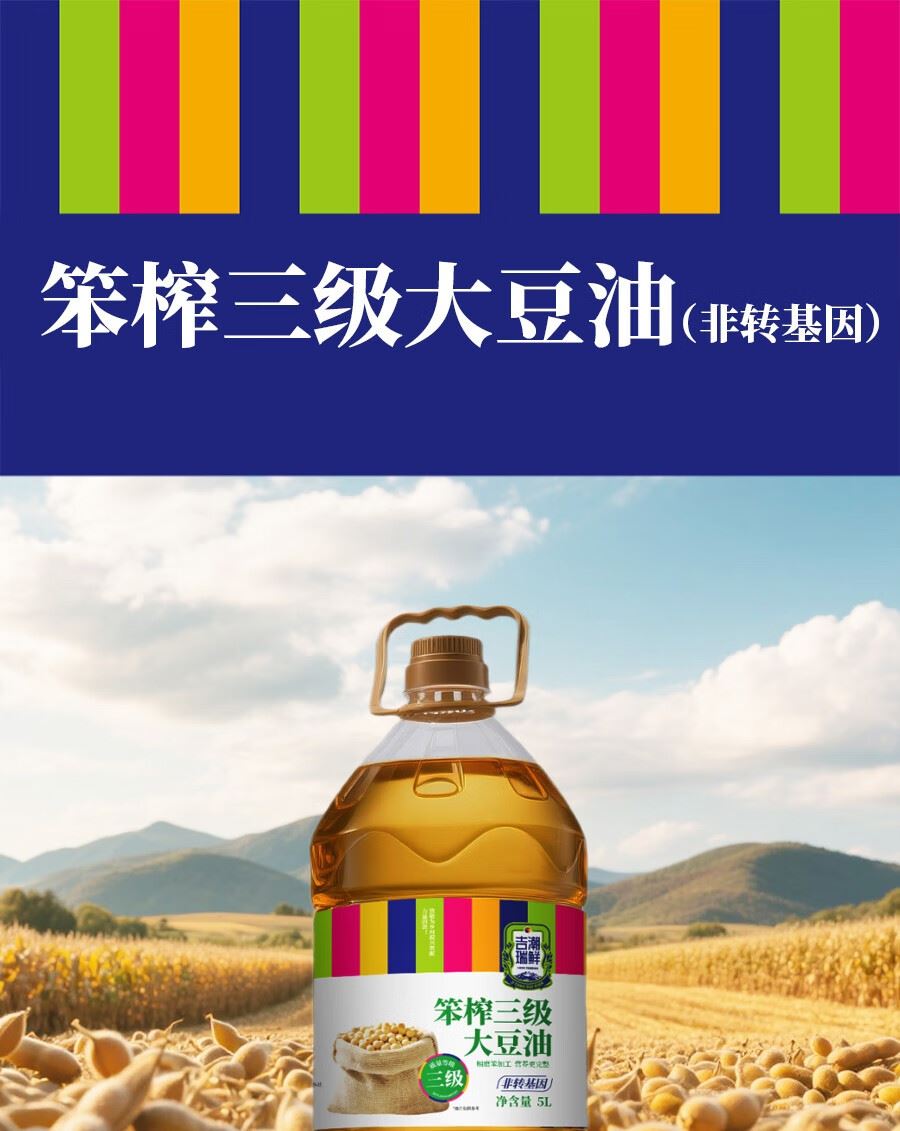 吉潮瑞鲜笨榨三级大豆油(非转基)5L