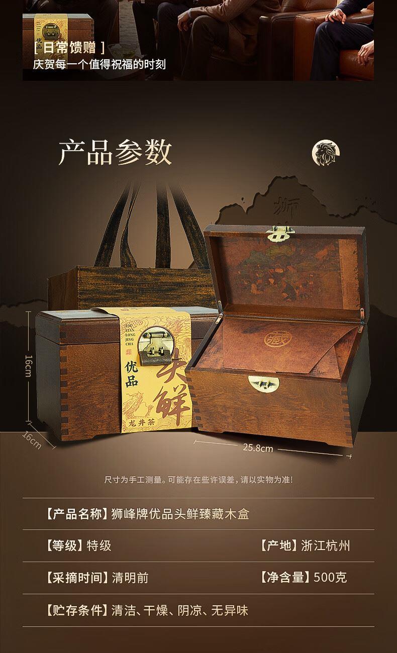 狮峰牌龙井茶特级头鲜臻藏优品木盒500g
