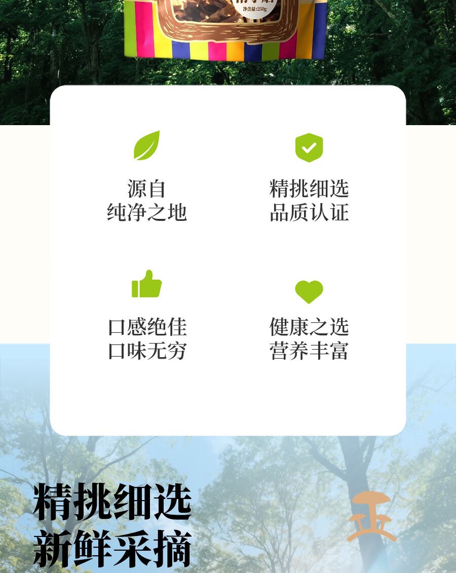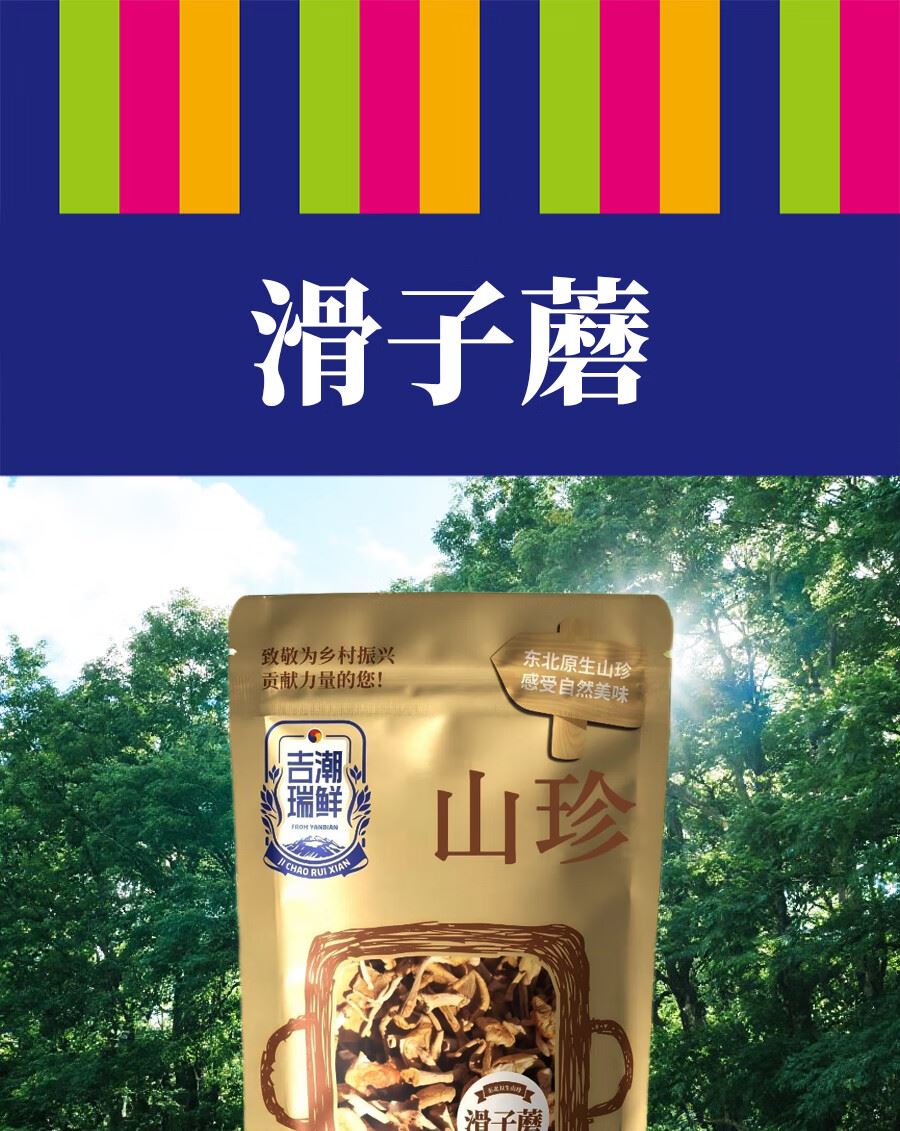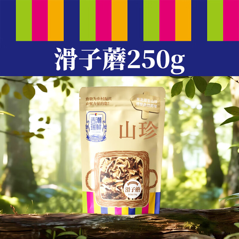 吉潮瑞鲜滑子蘑250克*1袋 配料:滑子蘑 产地:吉林省汪清县 类型:干制食用菌制品 保质期:12个月净含量:250g 贮存方法:置于阴凉通风干燥处