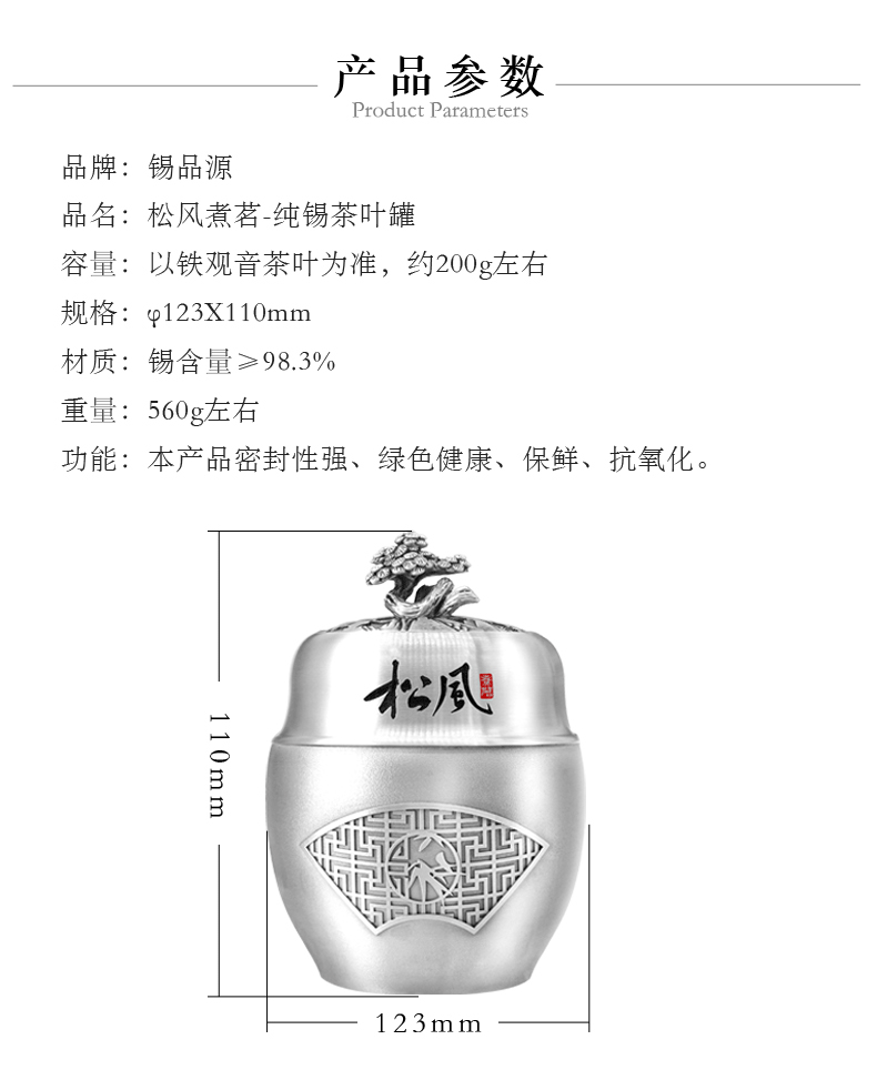 锡品源松风煮茗防潮保鲜锡茶罐送礼手工纯锡茶叶罐可定制储茶罐