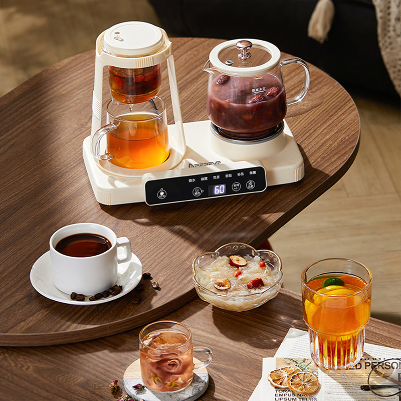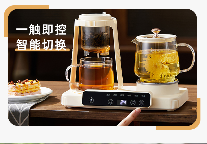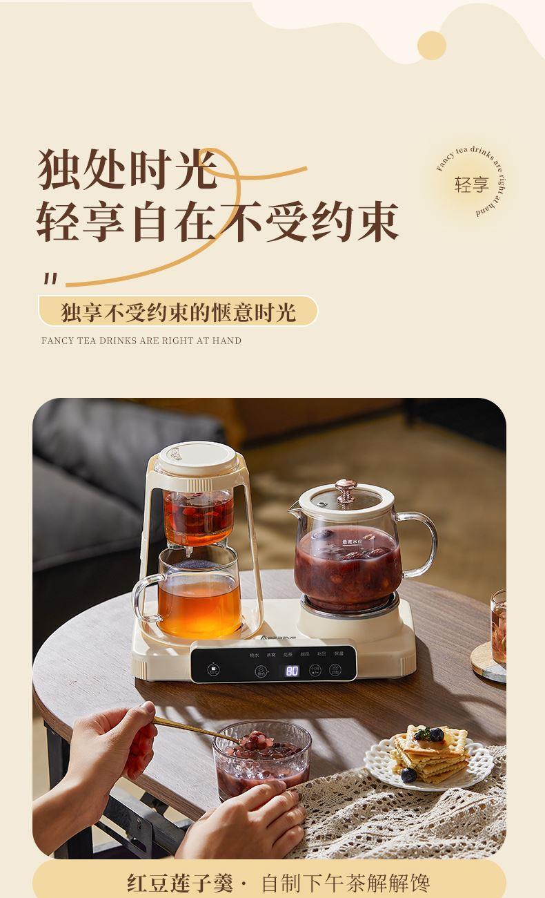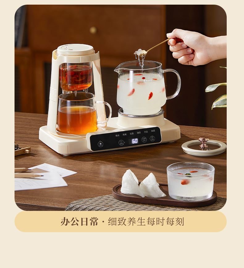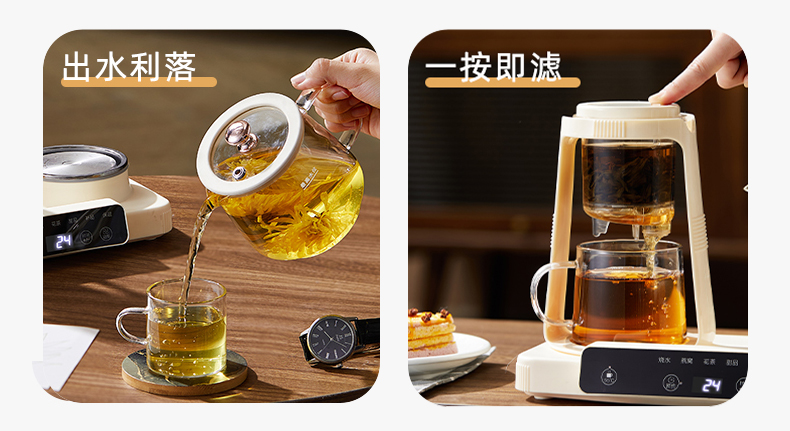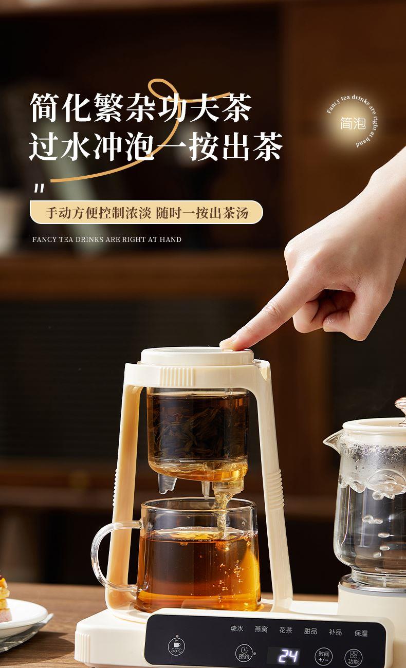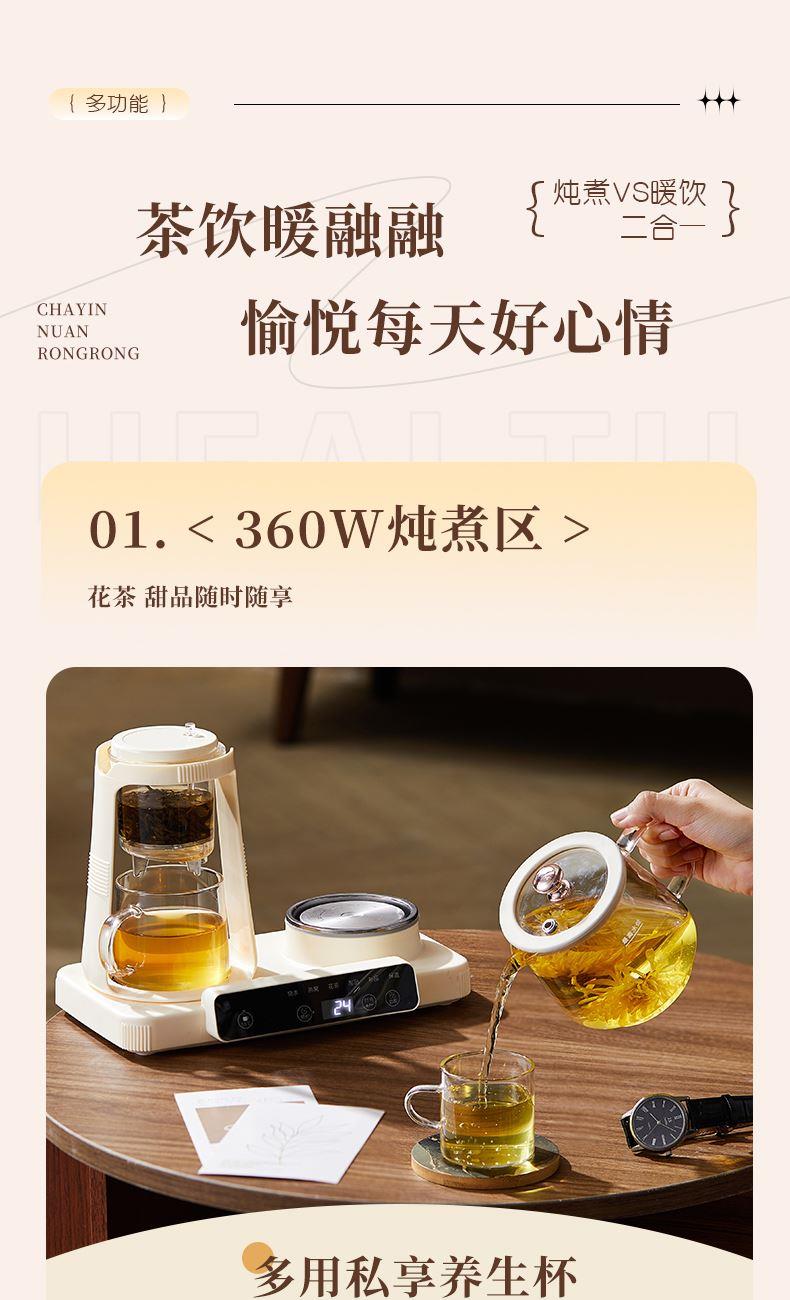 ◁双杯设计,自带茶水分离配置,提杯即可享受畅饮
